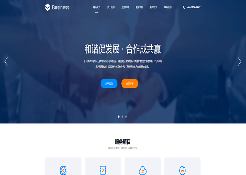 模板名稱:(帶手機版數據同步)自適應藍色商業類通用網站模板