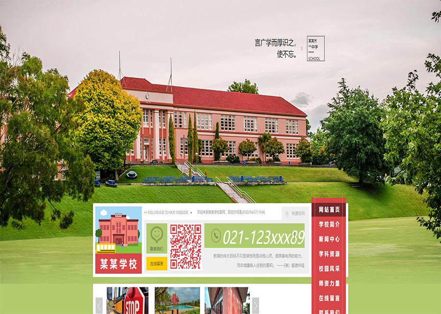 模板名稱:(帶手機(jī)版數(shù)據(jù)同步)自適應(yīng)學(xué)校類綠色網(wǎng)站模板