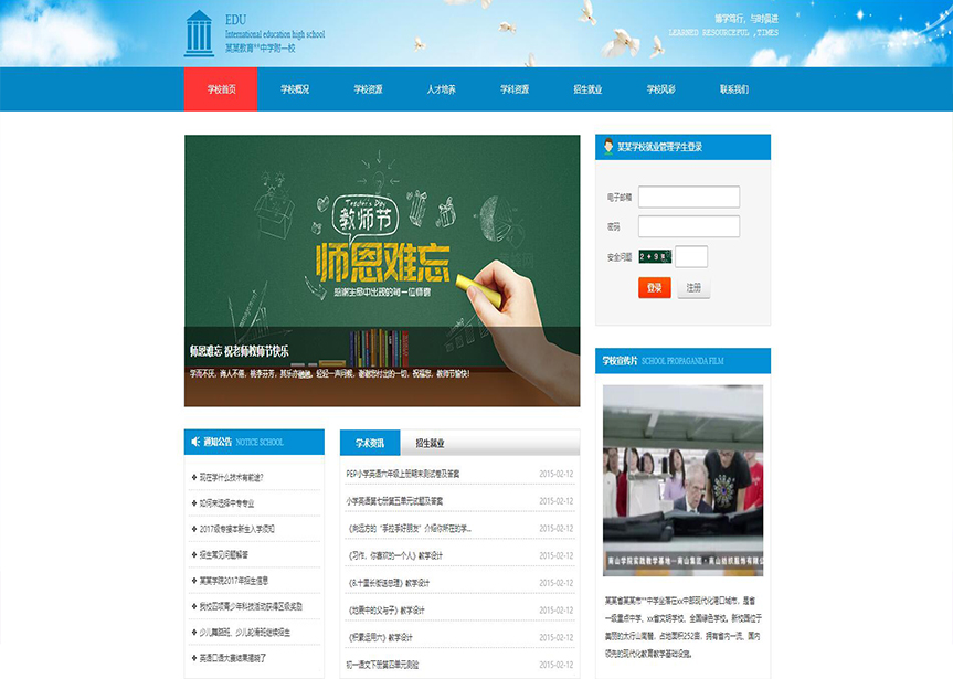 模板名稱:(帶手機(jī)版數(shù)據(jù)同步)自適應(yīng)中學(xué)附一校網(wǎng)站模板