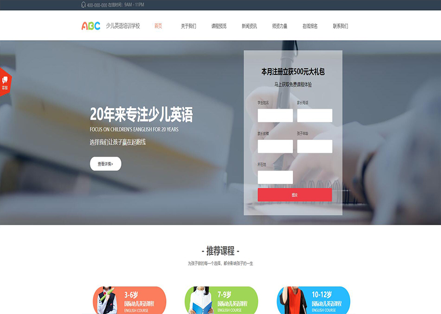 模板名稱:(帶手機版數據同步)自適應少兒英語培訓學校網站模板