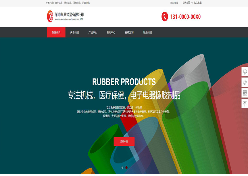 模板名稱:(帶手機版數據同步)自適應橡膠塑料紅色網站模板
