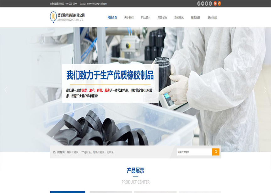模板名稱:(帶手機版數據同步)自適應橡膠塑料制品通用網站模板