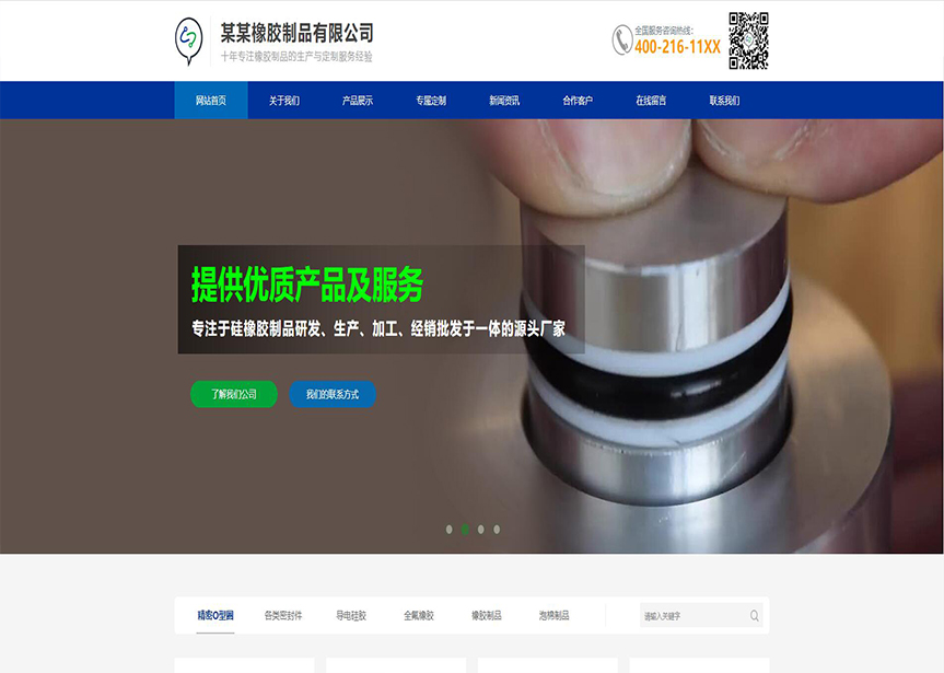 首頁 / 橡膠、塑料制品 / (帶手機版數據同步)自適應橡膠制品通用網站模板