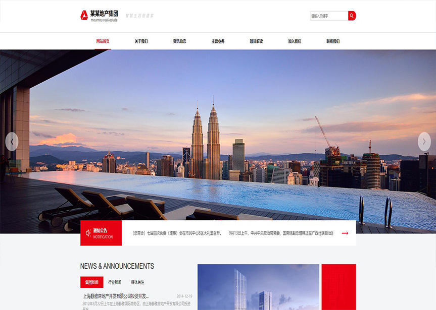 模板名稱:(帶手機版數據同步)自適應房地產集團紅色網站模板