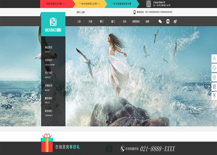 (帶手機版數據同步)自適應攝影沖印類婚紗攝影企業網站模板