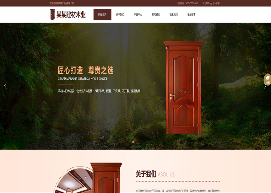 模板名稱:(帶手機版數據同步)自適應建材木業類褐色通用網站模板