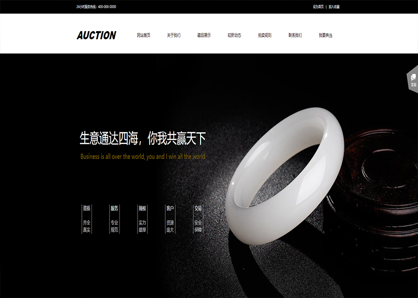 模板名稱:(帶手機版數據同步)自適應拍賣典當類黑色通用網站模板