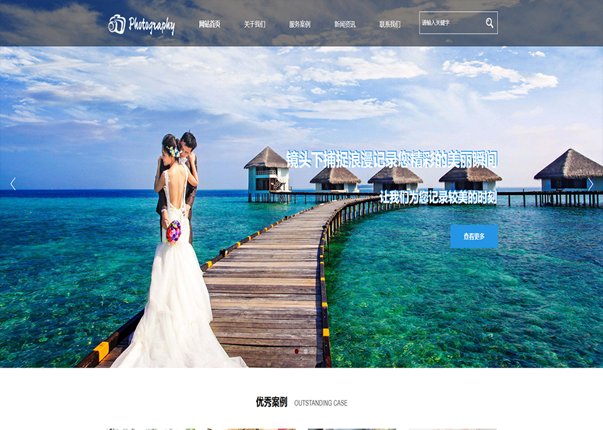 首頁 / 攝影、沖印 / (帶手機版數據同步)自適應攝影沖印類婚紗攝影通用網站模板