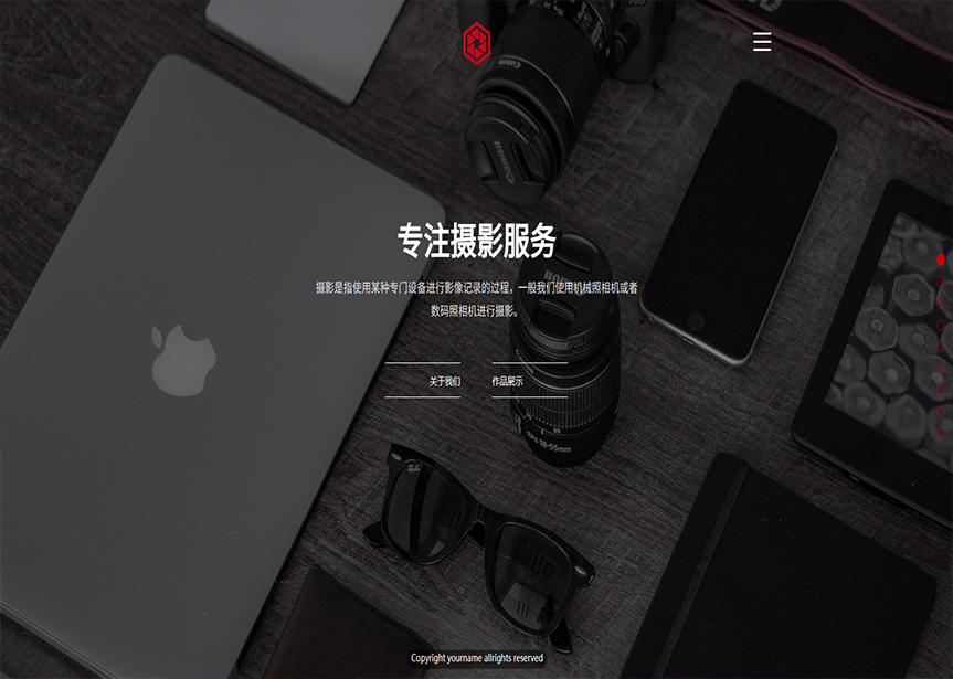 模板名稱:(帶手機(jī)版數(shù)據(jù)同步)自適應(yīng)攝影沖印類攝影紅色網(wǎng)站模板