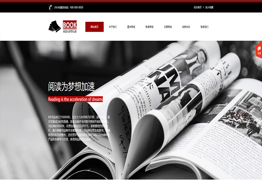 模板名稱:(帶手機版數據同步)自適應文教書籍類紅色通用網站模板