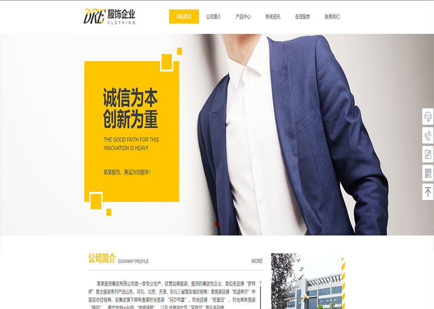 模板名稱:(帶手機版數據同步)自適應服裝類黃色通用網站模板