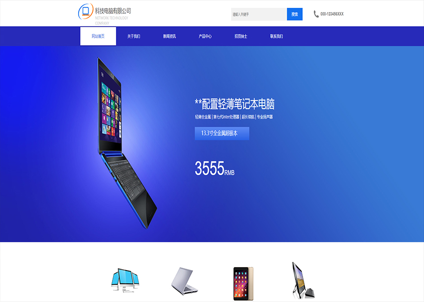 模板名稱:(帶手機版數據同步)自適應電腦類藍色通用網站模板