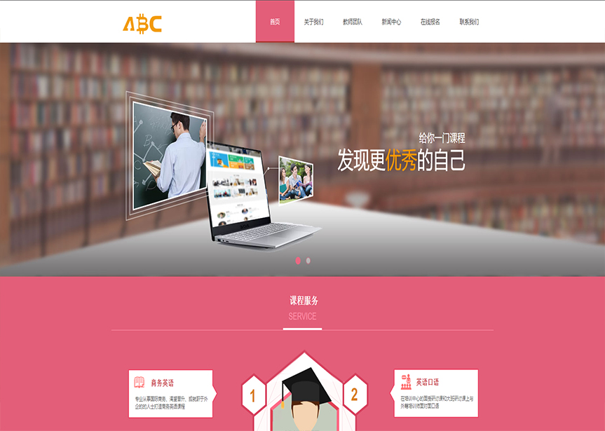 模板名稱:(帶手機版數據同步)自適應教育培訓類粉紅色通用網站模板