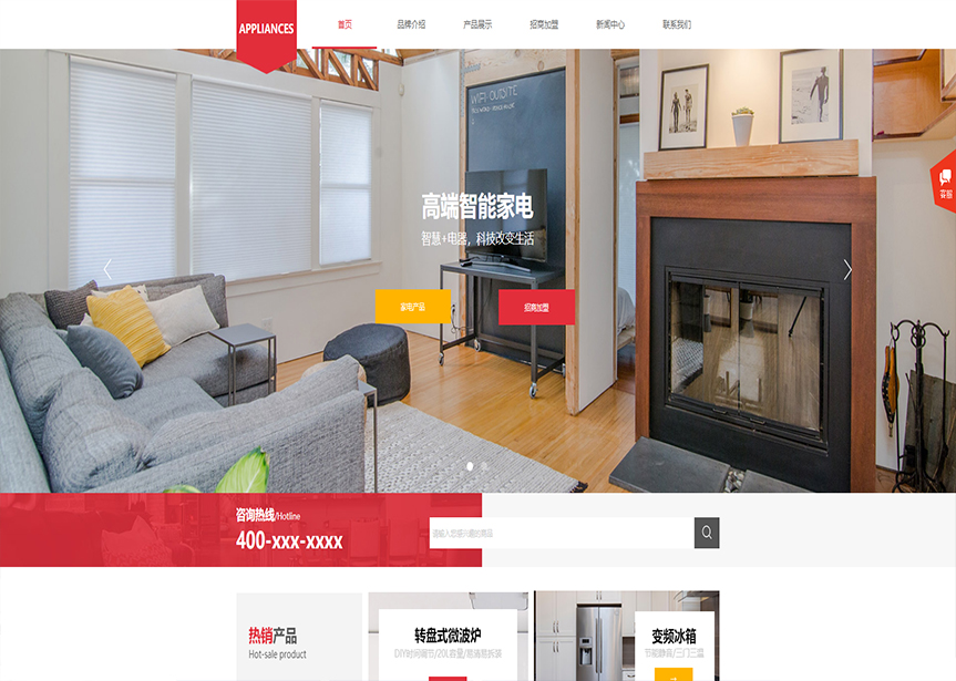模板名稱:(帶手機(jī)版數(shù)據(jù)同步)自適應(yīng)家電類紅色通用網(wǎng)站模板