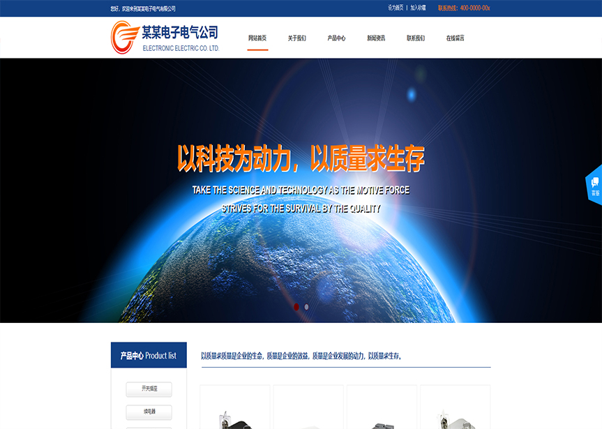 模板名稱:(帶手機版數據同步)自適應電子電氣類藍色通用網站模板