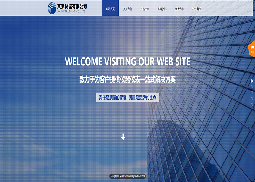 模板名稱:(帶手機版數據同步)自適應儀器儀表類藍色通用網站模板