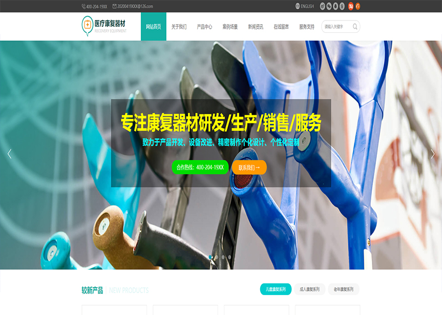 模板名稱:(帶手機版數據同步)自適應醫療保健類康復器材通用網站模板