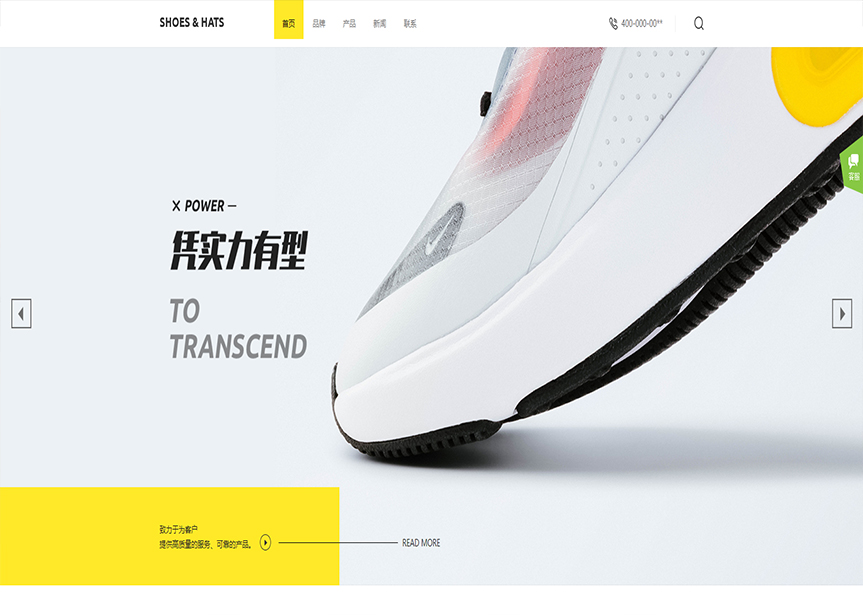 模板名稱:(帶手機版數據同步)自適應鞋帽類黃色通用網站模板