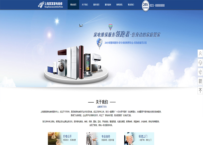 模板名稱:(帶手機版數據同步)自適應其他類家電維修通用網站模板