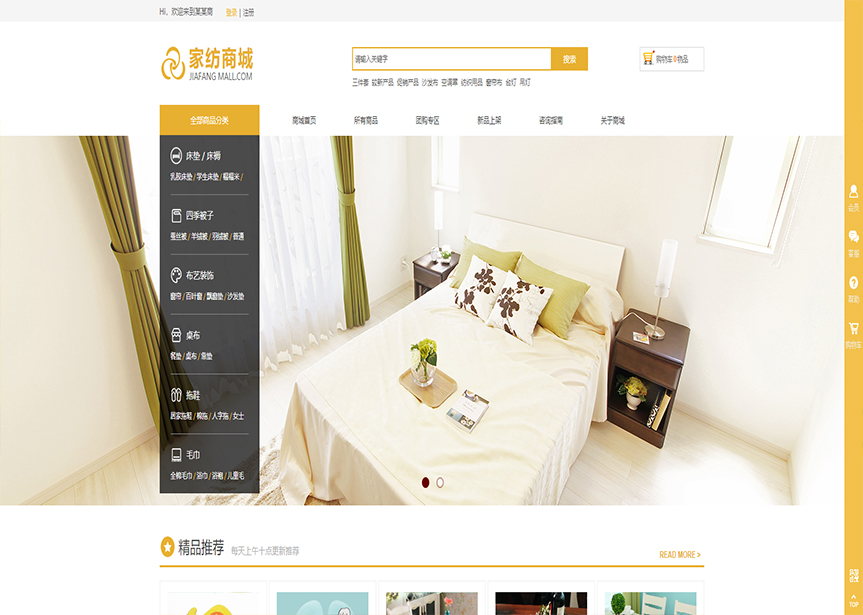 模板名稱:(帶手機版數據同步)自適應商城類家紡商城通用網站模板