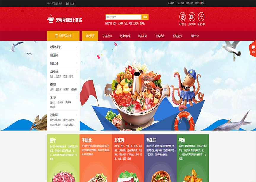 模板名稱:(帶手機(jī)版數(shù)據(jù)同步)自適應(yīng)商城類火鍋食材商城通用網(wǎng)站模板