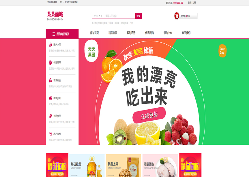 模板名稱:(帶手機版數據同步)自適應商城類生鮮商城通用網站模板