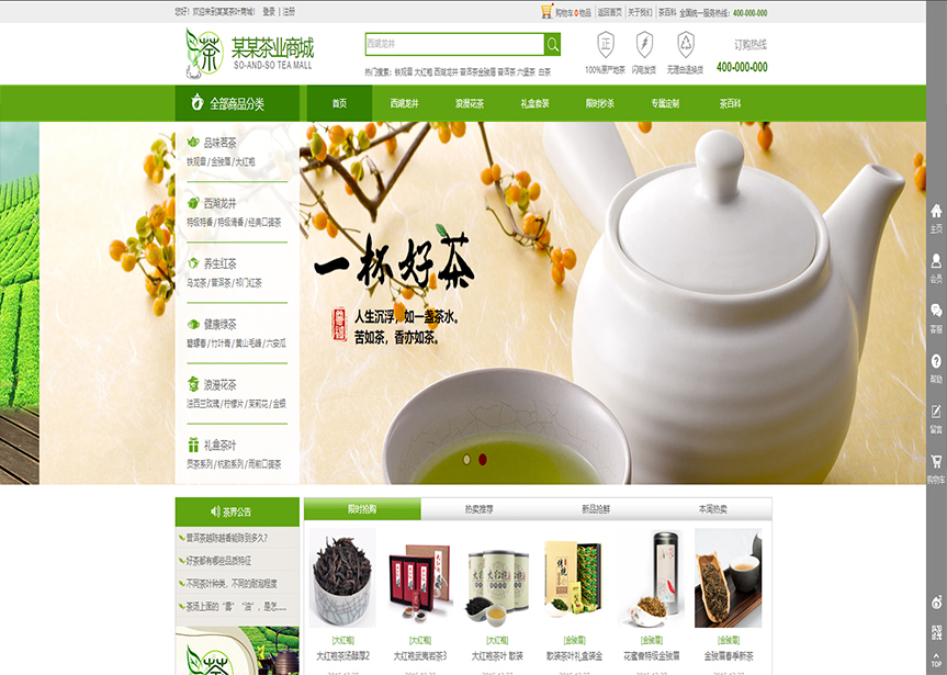 模板名稱:(帶手機版數據同步)自適應商城類茶葉商城通用網站模板