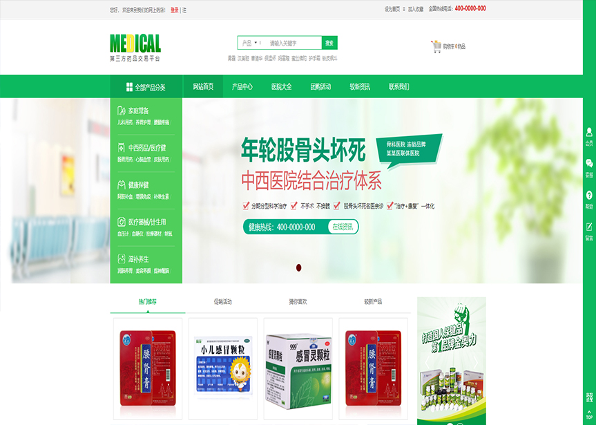 模板名稱:(帶手機版數據同步)自適應商城類藥品商城通用網站模板