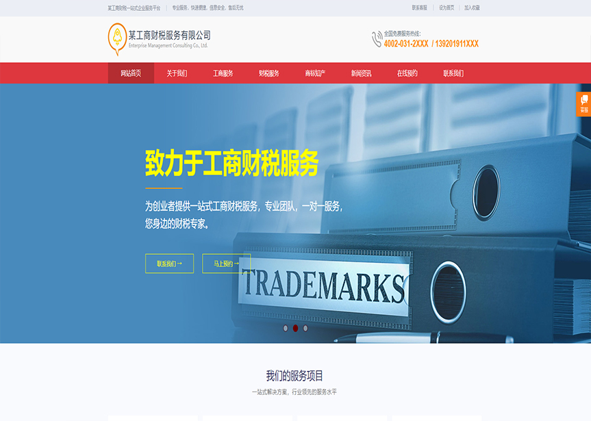 模板名稱:(帶手機版數據同步)自適應商業類財務報稅網站模板
