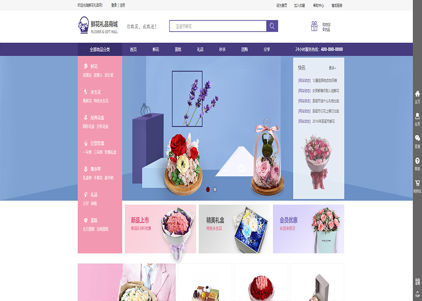 網站模板名稱:(帶手機版數據同步)自適應商城類鮮花禮品商城通用網站模板