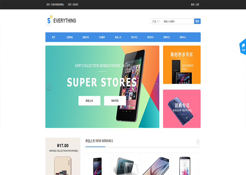 網站模板名稱:(帶手機版數據同步)自適應商城類手機商城通用網站模板