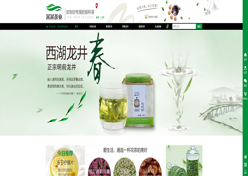網站模板名稱:(帶手機版數據同步)自適應商城類茶葉商城通用網站模板