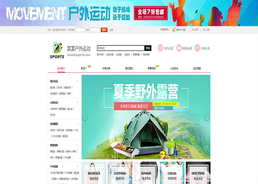 網站模板名稱:(帶手機版數據同步)自適應商城類戶外運動商城通用網站模板
