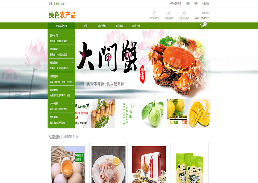 網站模板名稱:(帶手機版數據同步)自適應商城類農產品商城通用網站模板