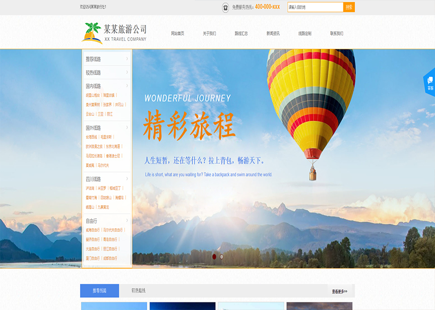 模板名稱:(帶手機版數據同步)自適應旅游風景類藍色通用網站模板