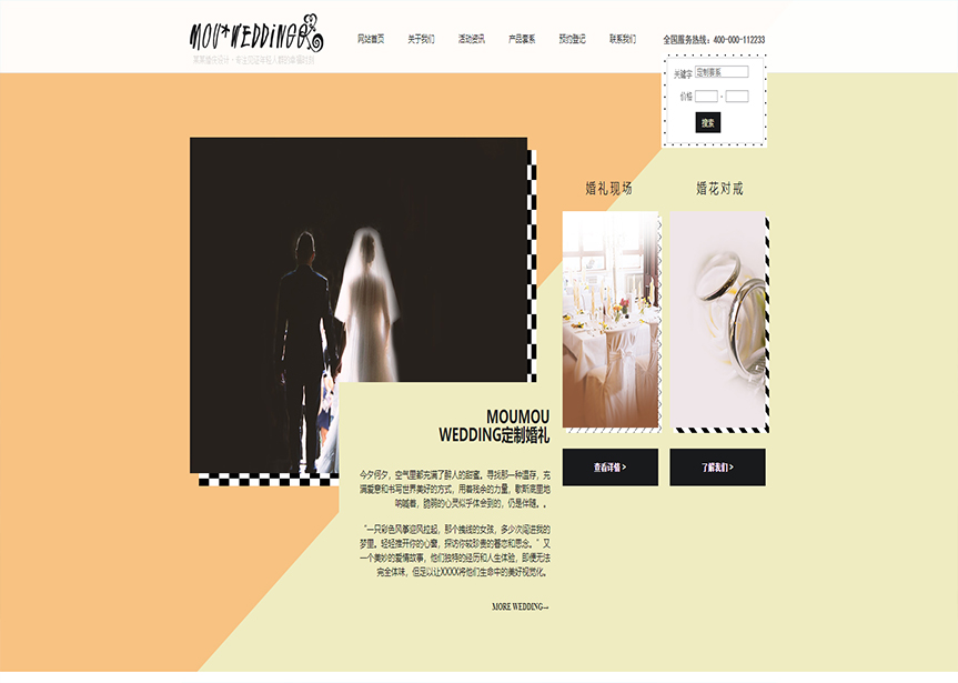 網站模板名稱:(帶手機版數據同步)自適應婚禮婚慶類通用網站模板
