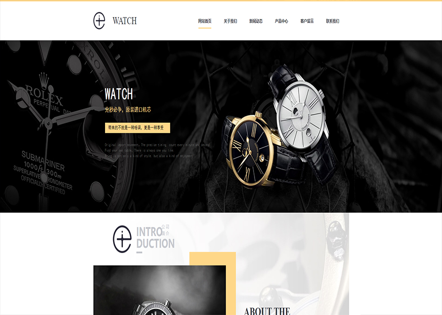 網站模板名稱:(帶手機版數據同步)自適應鐘表類黃色網站模板