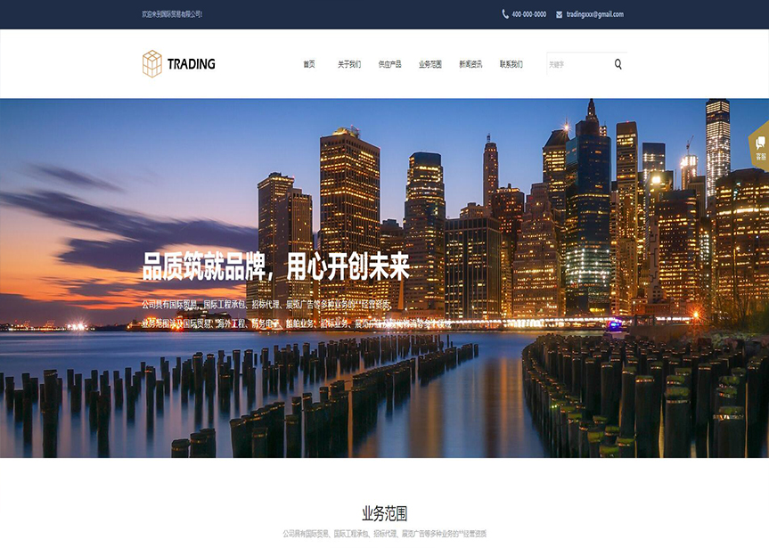 網站模板名稱:(帶手機版數據同步)自適應貿易出口類通用網站模板