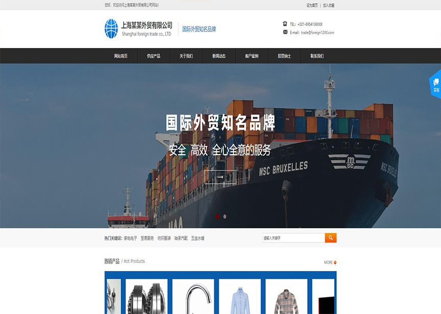 網站模板名稱:(帶手機版數據同步)自適應貿易出口類藍色網站模板