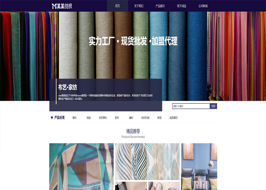 模板名稱:(帶手機版數據同步)自適應紡織類紫色網站模板