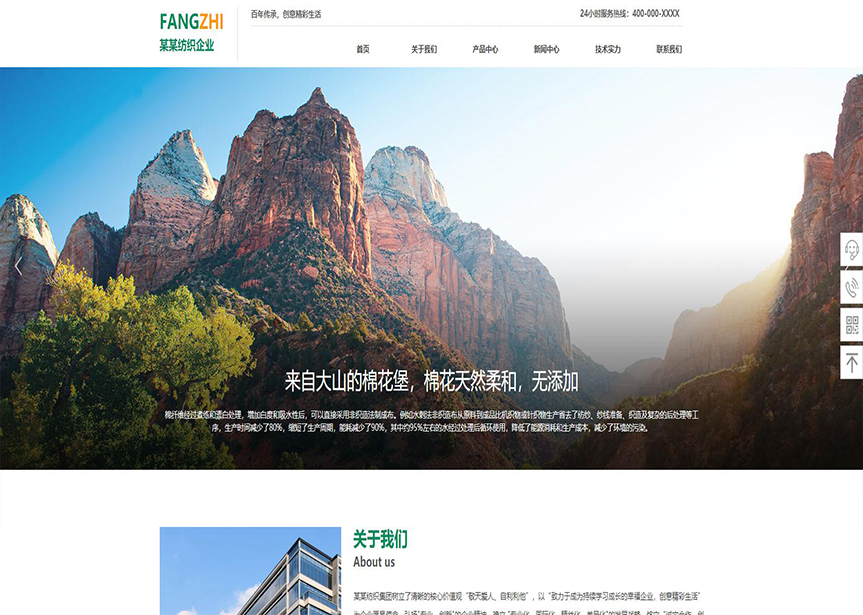 模板名稱:(帶手機版數據同步)自適應紡織類綠色網站模板