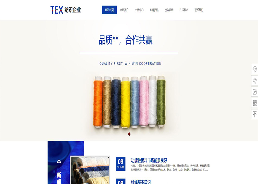 首頁 / 紡織 / (帶手機版數據同步)自適應紡織類藍色網站模板