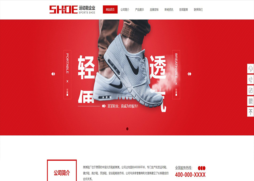 模板名稱:(帶手機版數據同步)自適應鞋帽類紅色通用網站模板