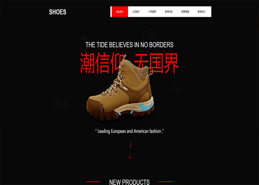 模板名稱:(帶手機版數據同步)自適應鞋帽類紅色網站模板