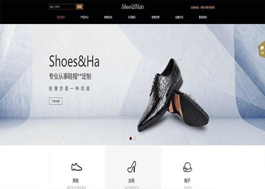 模板名稱:(帶手機版數據同步)自適應鞋帽類通用網站模板