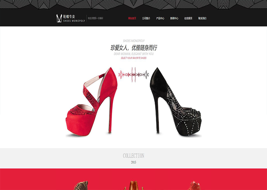 模板名稱:(帶手機版數據同步)自適應鞋帽類紅色網站模板