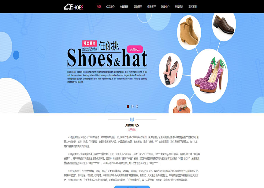 模板名稱:(帶手機(jī)版數(shù)據(jù)同步)自適應(yīng)鞋帽類粉紅色網(wǎng)站模板