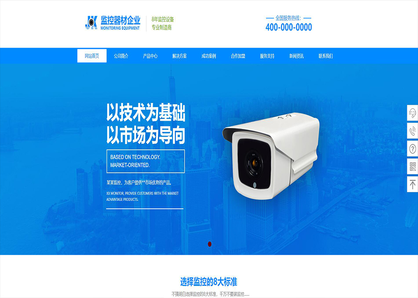 模板名稱:(帶手機版數據同步)自適應安防監控器材類藍色網站模板