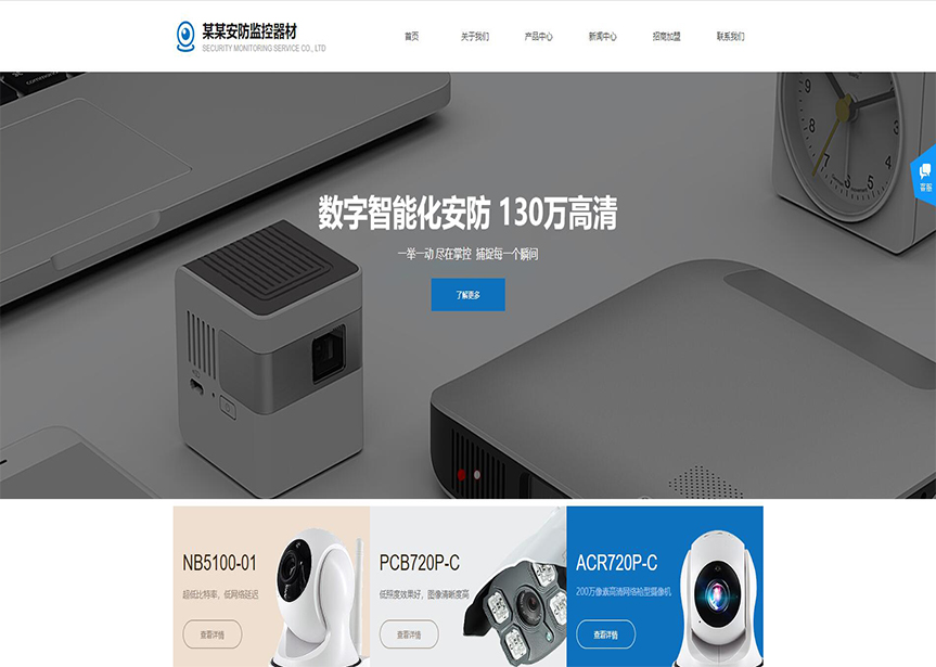 首頁 / 安防、監控器材 / (帶手機版數據同步)自適應安防監控器材類藍色網站模板
