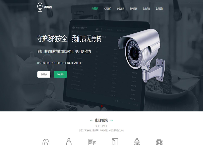 模板名稱:(帶手機版數據同步)自適應安防監控器材類綠色網站模板